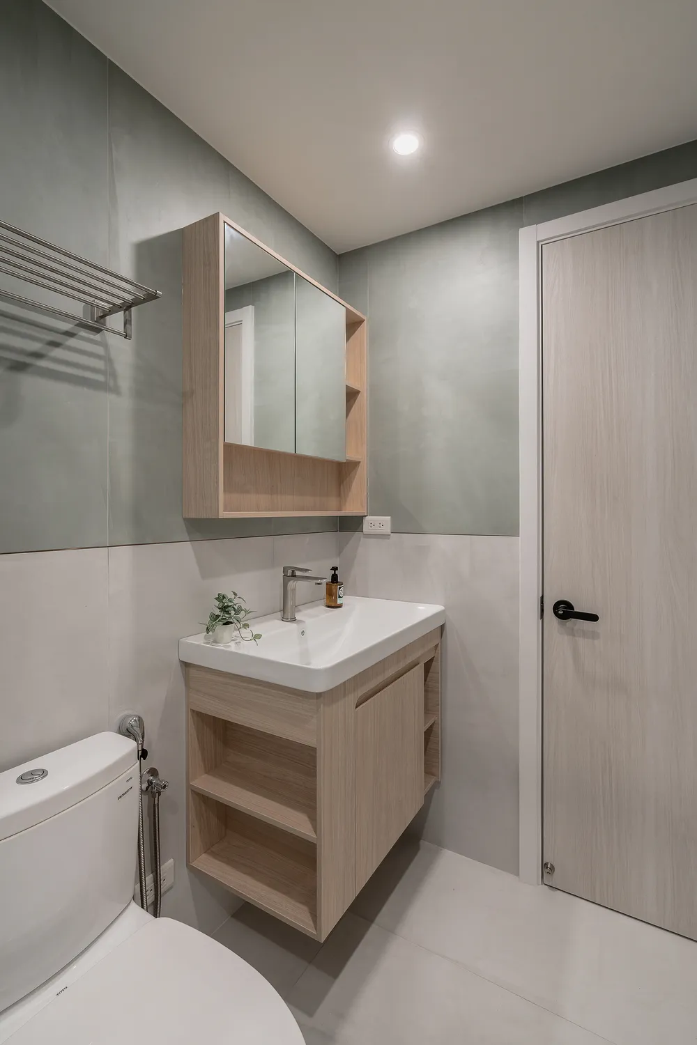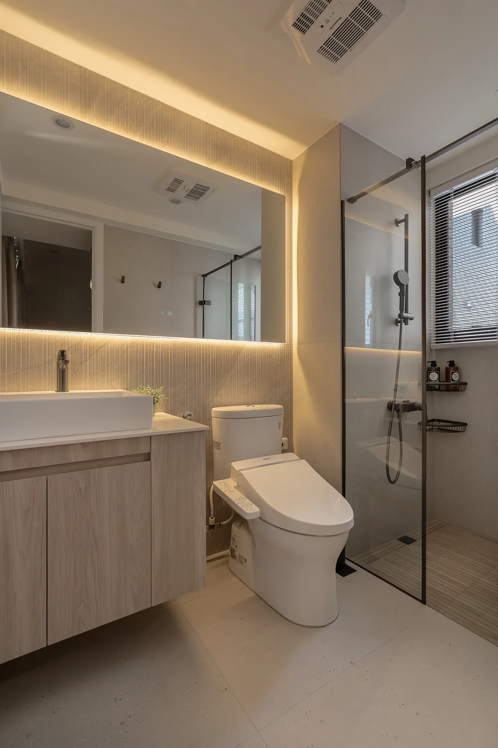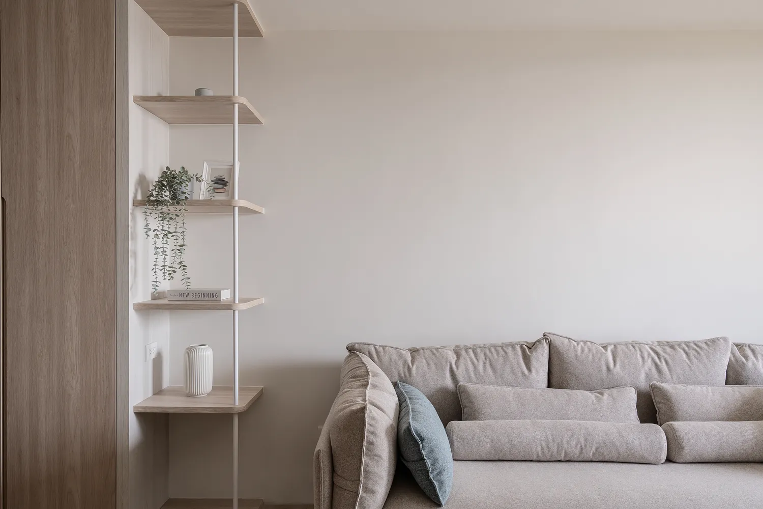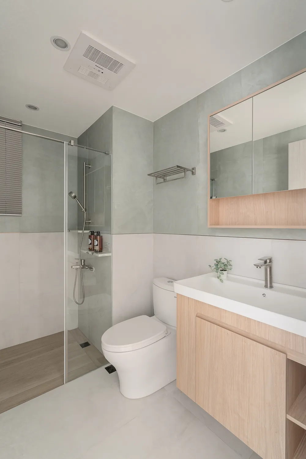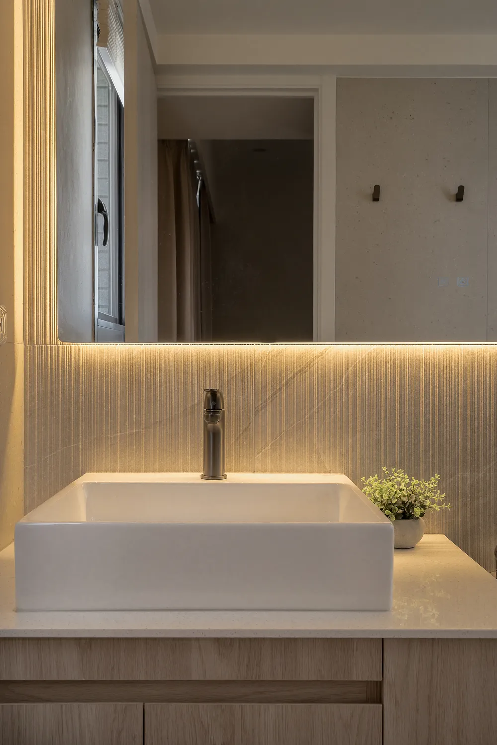 本案以溫潤的淺木紋為基底,點綴著樸質的藤編傢俱,營造出宛如度假般的愜意氛圍; 玄關處的幾何花磚與長虹玻璃,輕巧地劃分了內外,讓回家的步伐變得輕盈; 陽台那株姿態優雅的綠植,將自然的生命力引入室內; 在這個被光影與植栽擁抱的空間裡,日子過得緩慢而舒心。